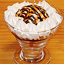 食後のちょっと甘いもの。チョコソースとキャラメルソースにホイップ。